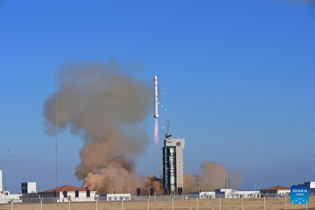 A Long March-4C rocket carrying satellites Shiyan-20A and Shiyan-20B is launched from the Jiuquan Satellite Launch Center in northwest China, Dec. 12, 2022. The rocket blasted off at 4:22 p.m. (Beijing Time) on Monday and sent the satellites into the preset orbit. (Photo by Wang Jiangbo/Xinhua)