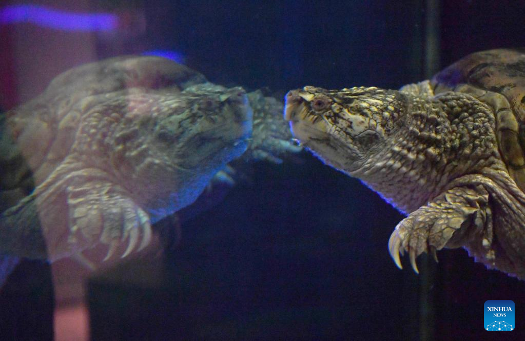 A common snapping turtle is seen at Quebec's Biodiversity Museum in Becancour, Canada, Dec. 11, 2022. Founded in 1997, Quebec's Biodiversity Museum is situated in Becancour, 150 km from Montreal, Canada.