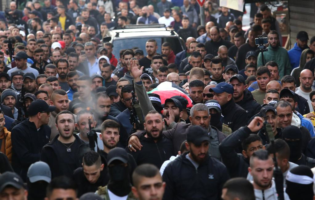 Mourners carry the body of Palestinian teenage girl Jana Majdi Zakarneh during her funeral in the northern West Bank city of Jenin, on Dec. 12, 2022. (Photo by Nidal Eshtayeh/Xinhua)