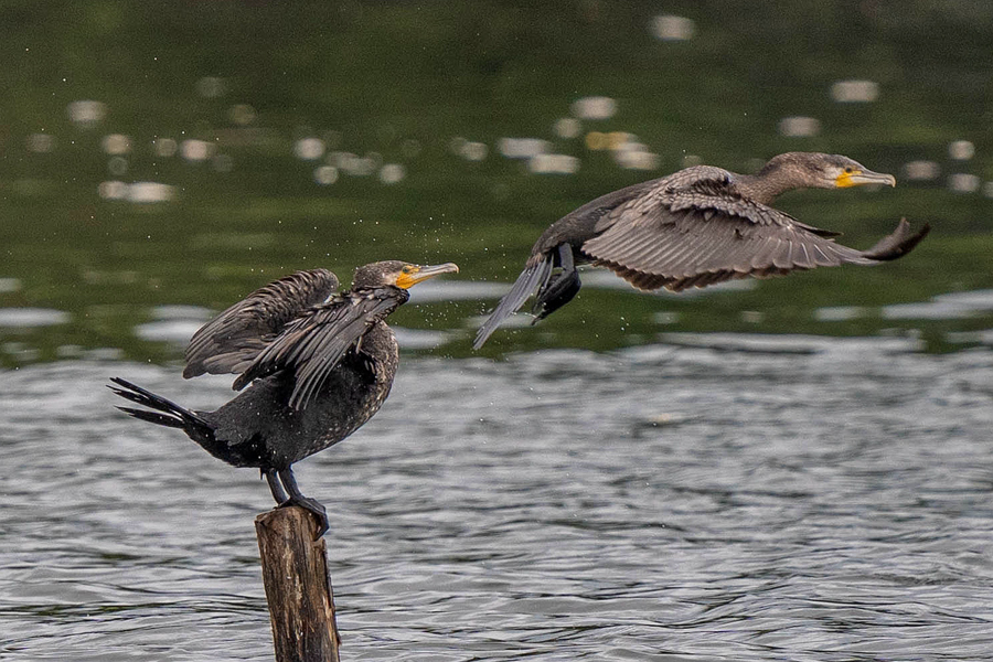 Two cormorants forage on the bank of Xinglin Bay, Xiamen city, southeast China’s Fujian Province. (Photo/Xu Qiuheng)