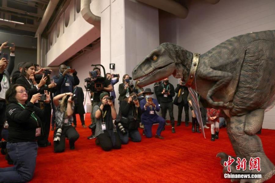 Frankie the Dinosaur, the United Nations Development Programme's “special guest,” makes an appearance at the United Nations Biodiversity Conference (COP15) in Montreal, Canada, Dec, 2022. (Photo: China News Service/Yu Ruidong)
