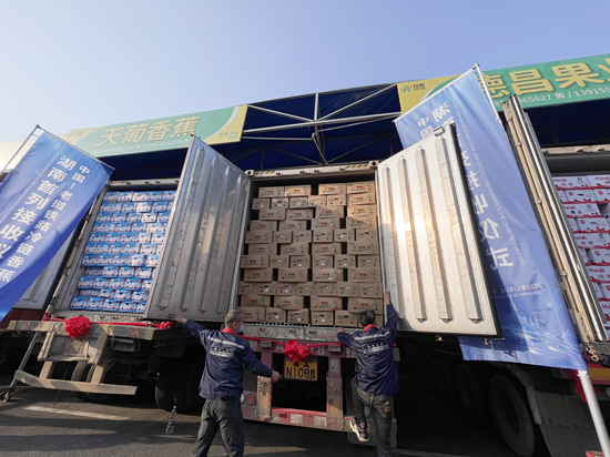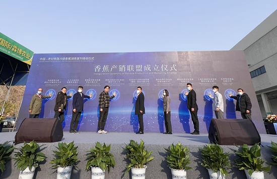 The agricultural product distribution industrial park, which is owned by Hongxing Industry Group Co., is able to process 150,000 kg of bananas a day, supplying fresh bananas to residents in Hunan Province and its neighboring provinces.