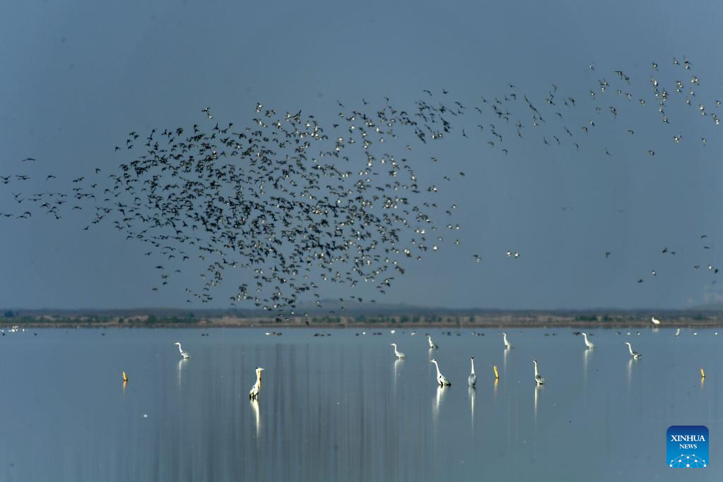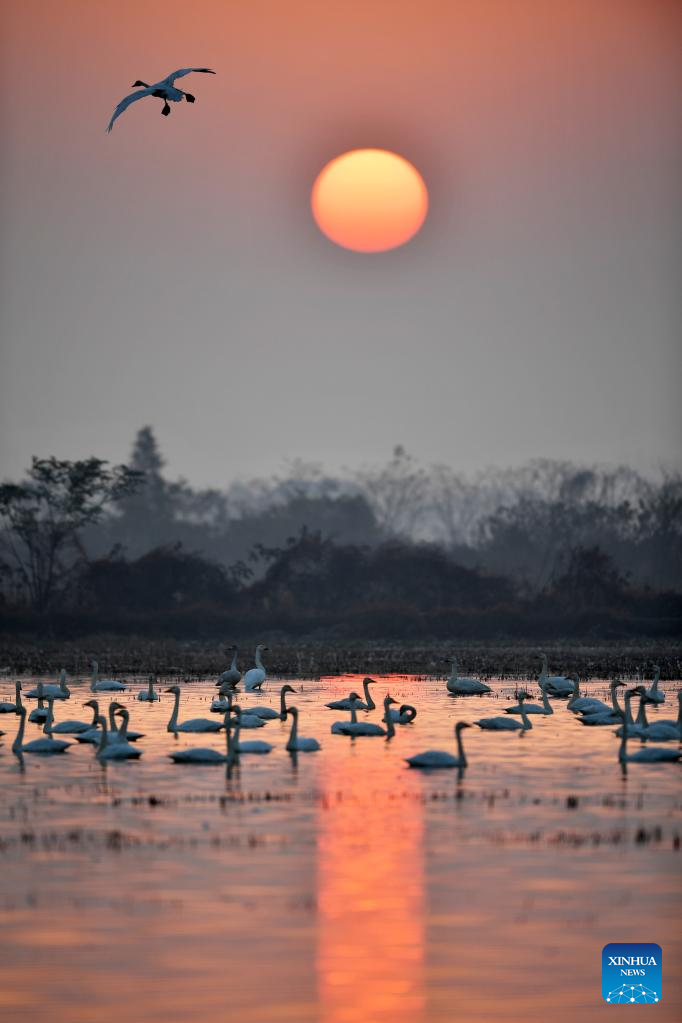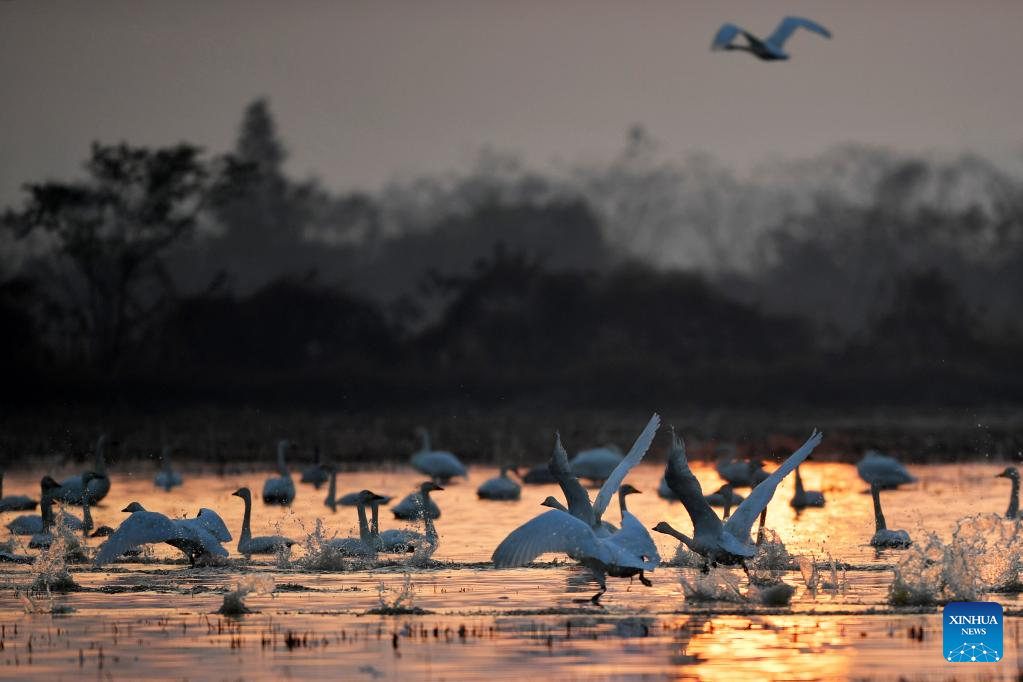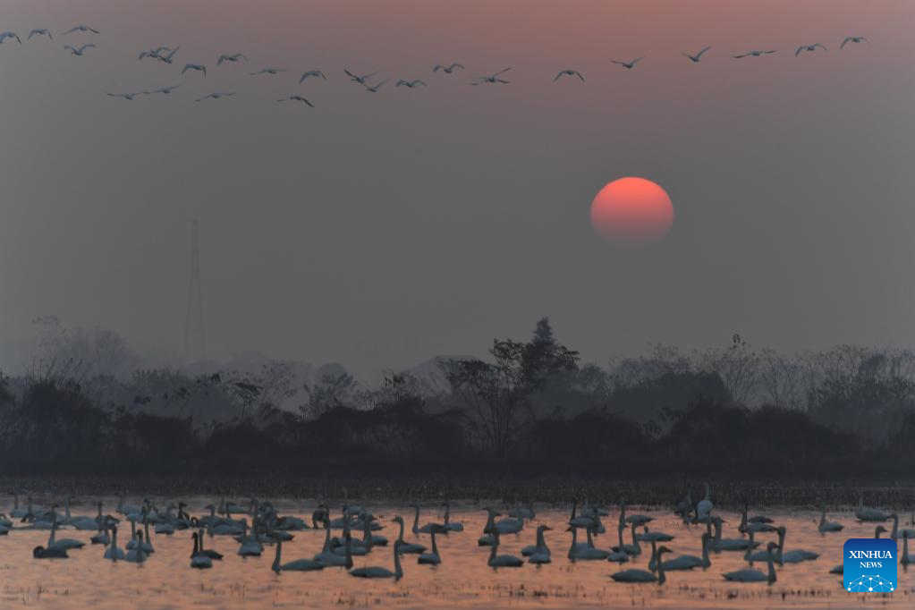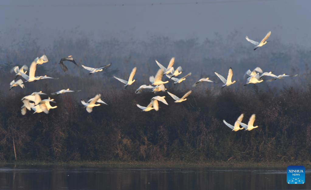 Wintering migrant birds arrive at Dongting Lake wetland in C China