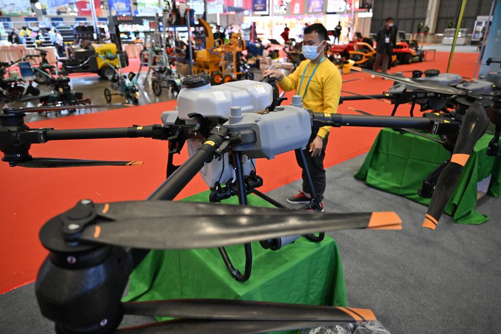 This photo taken on Dec. 15, 2022 shows an unmanned aerial vehicle (UAV) for plant protection at the 2022 China (Hainan) International Tropical Agricultural Products Winter Trade Fair in Haikou, south China's Hainan Province. (Xinhua/Guo Cheng)