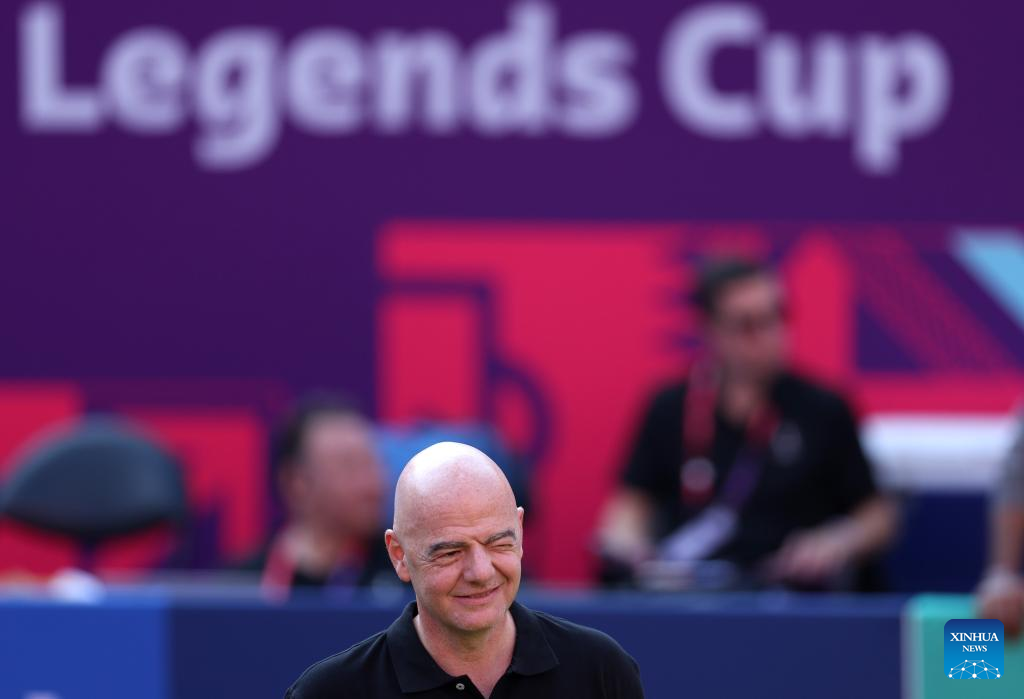 FIFA president Gianni Infantino is seen before the FIFA Legends Cup at the Khalifa International Tennis &Squash Complex in Doha, Qatar, Dec. 15, 2022. (Xinhua/Jia Haocheng)