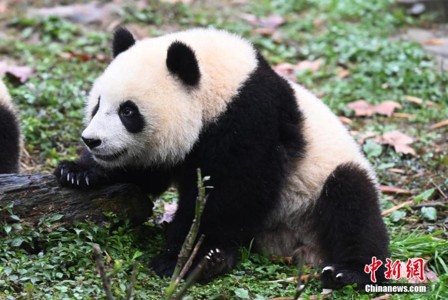 A giant panda plays at the Dujiangyan base of the China Conservation and Research Center for Giant Panda, southwest China's Sichuan Province, Dec. 15, 2022. (Photo: China News Service/An Yuan)