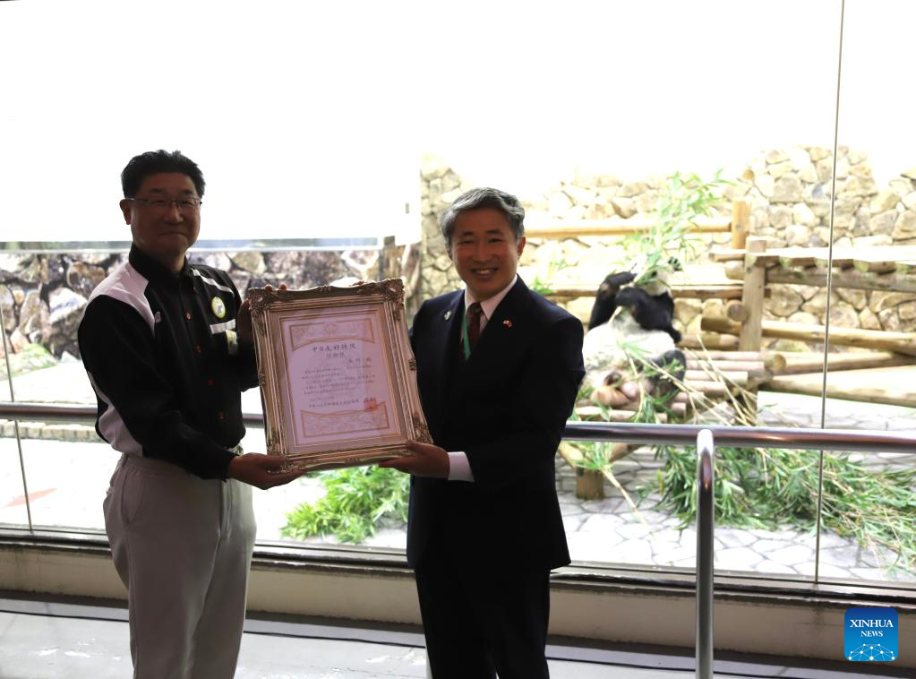 Chinese Consul General in Osaka Xue Jian announced the designation at a ceremony held Saturday in Adventure World, an amusement park in Shirahama of Japan's Wakayama prefecture, where the panda dwells.