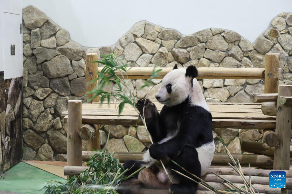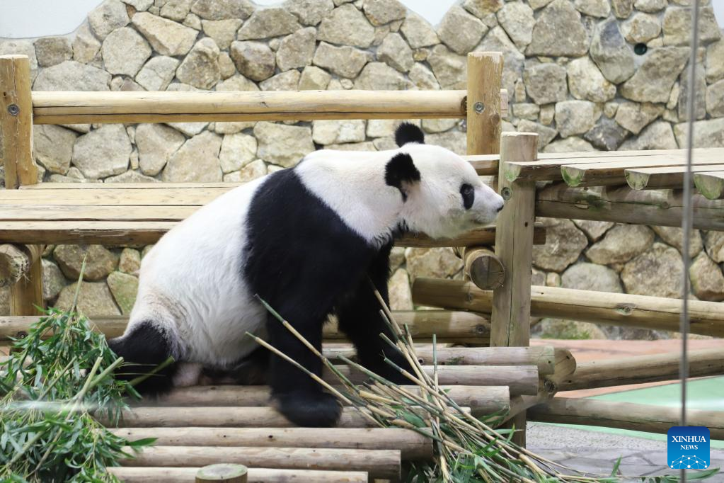 Giant panda Eimei is pictured in Adventure World, an amusement park in Shirahama of Japan's Wakayama prefecture, on Dec. 17, 2022. (Xinhua/Jiang Qiaomei)