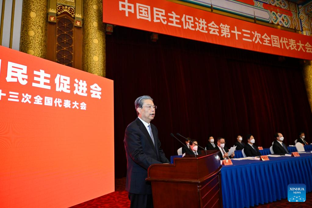 Zhao Leji, a member of the Standing Committee of the Political Bureau of the Communist Party of China (CPC) Central Committee, attends the opening of the 13th national congress of the China Association for Promoting Democracy (CAPD) and delivers a congratulatory message on behalf of the CPC Central Committee in Beijing, capital of China, Dec. 18, 2022. (Xinhua/Yin Bogu)