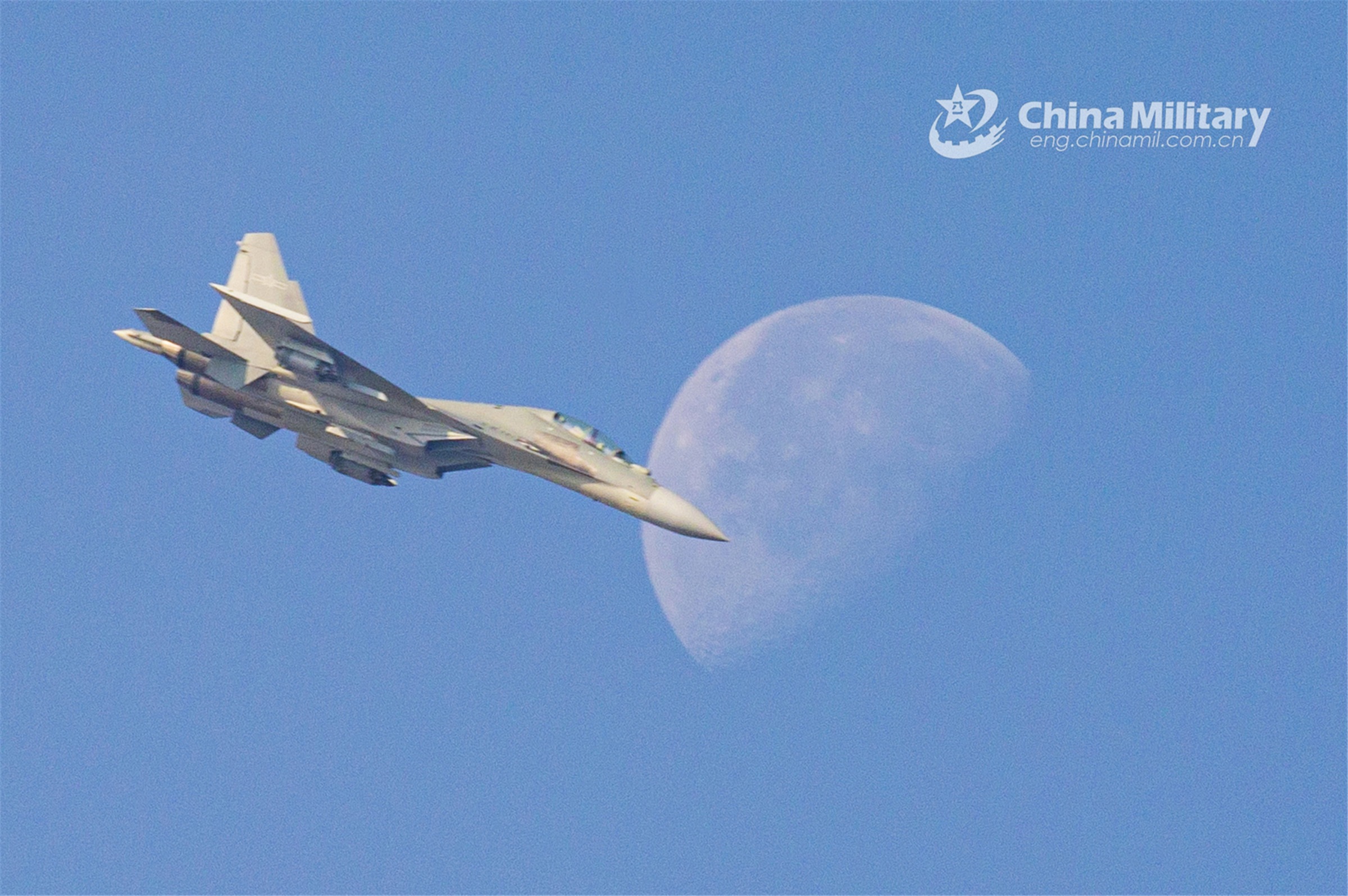 A fighter jet attached to an aviation brigade under the PLA Air Force practices diving maneuver during a flight training exercise on November 15, 2022. (eng.chinamil.com.cn/Photo by Liang Pengyu)