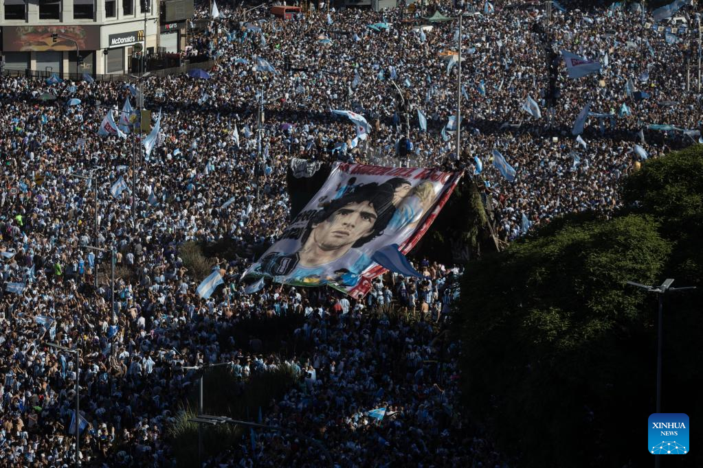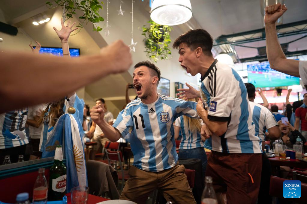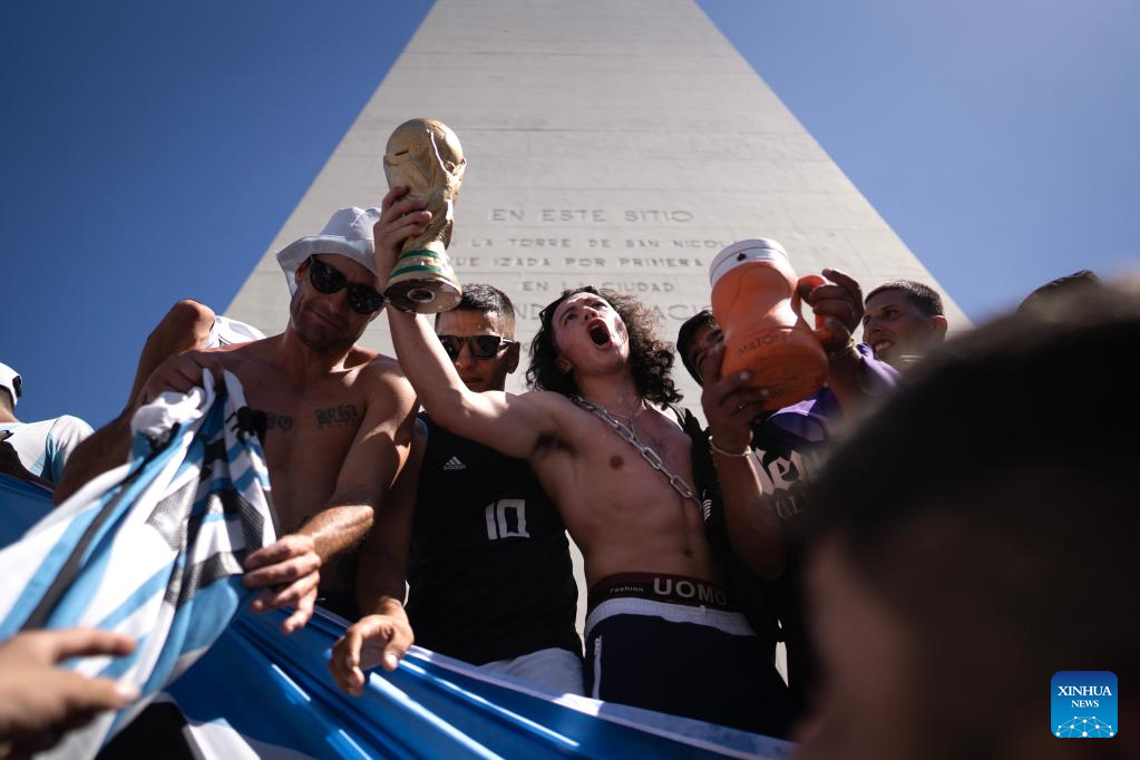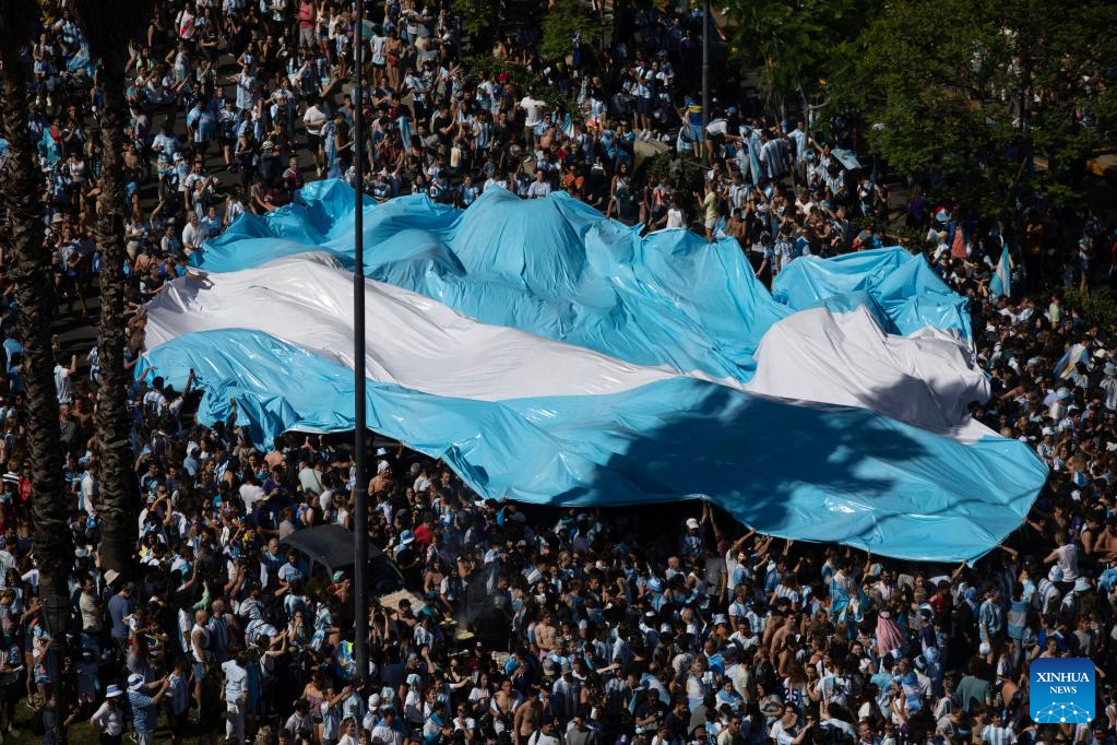 Fans of Argentina celebrate after their team winning the Final of the 2022 FIFA World Cup in Buenos Aires, capital of Argentina, Dec. 18, 2022. (Photo by Martin Zabala/Xinhua)