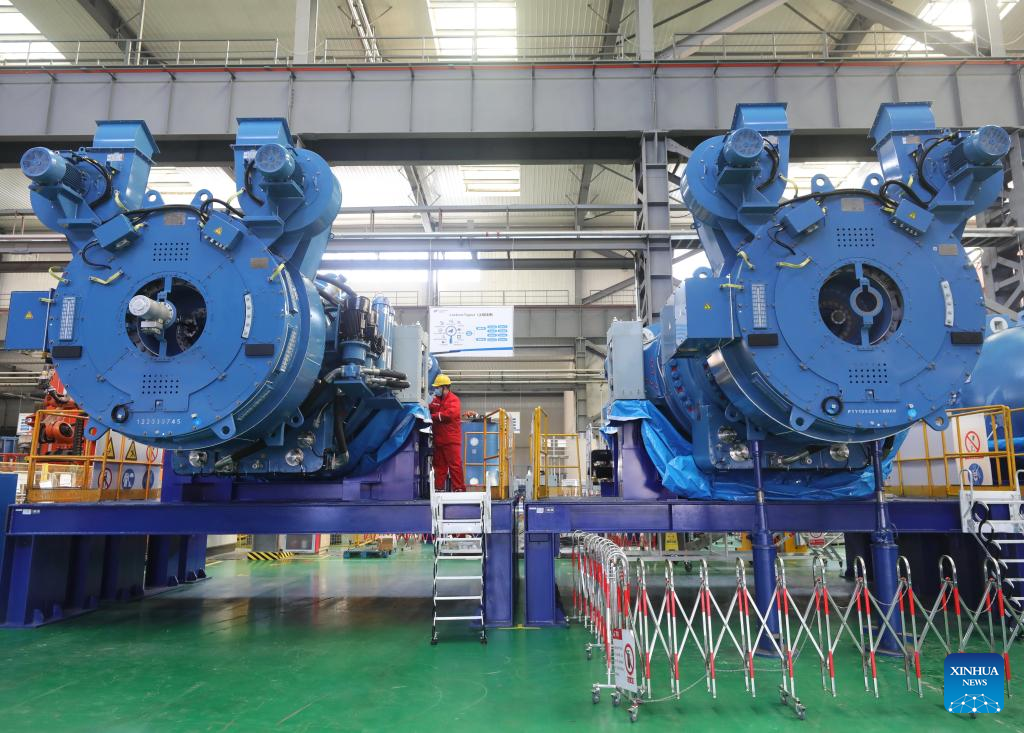 An employee works at a workshop of a wind power generation equipment company in Zhangjiakou, north China's Hebei Province, Nov. 14, 2022. (Xinhua/Yang Shiyao)