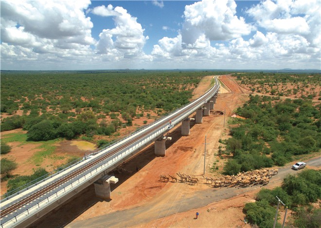 Wild animals pass through a passage built under the Mombasa-Nairobi Standard Gauge Railway (SGR) in Kenya. A total of 14 large wildlife passages have been set up along the entire railway in consideration of the living habits of wild animals. (Photo courtesy of the China Communications Construction)
