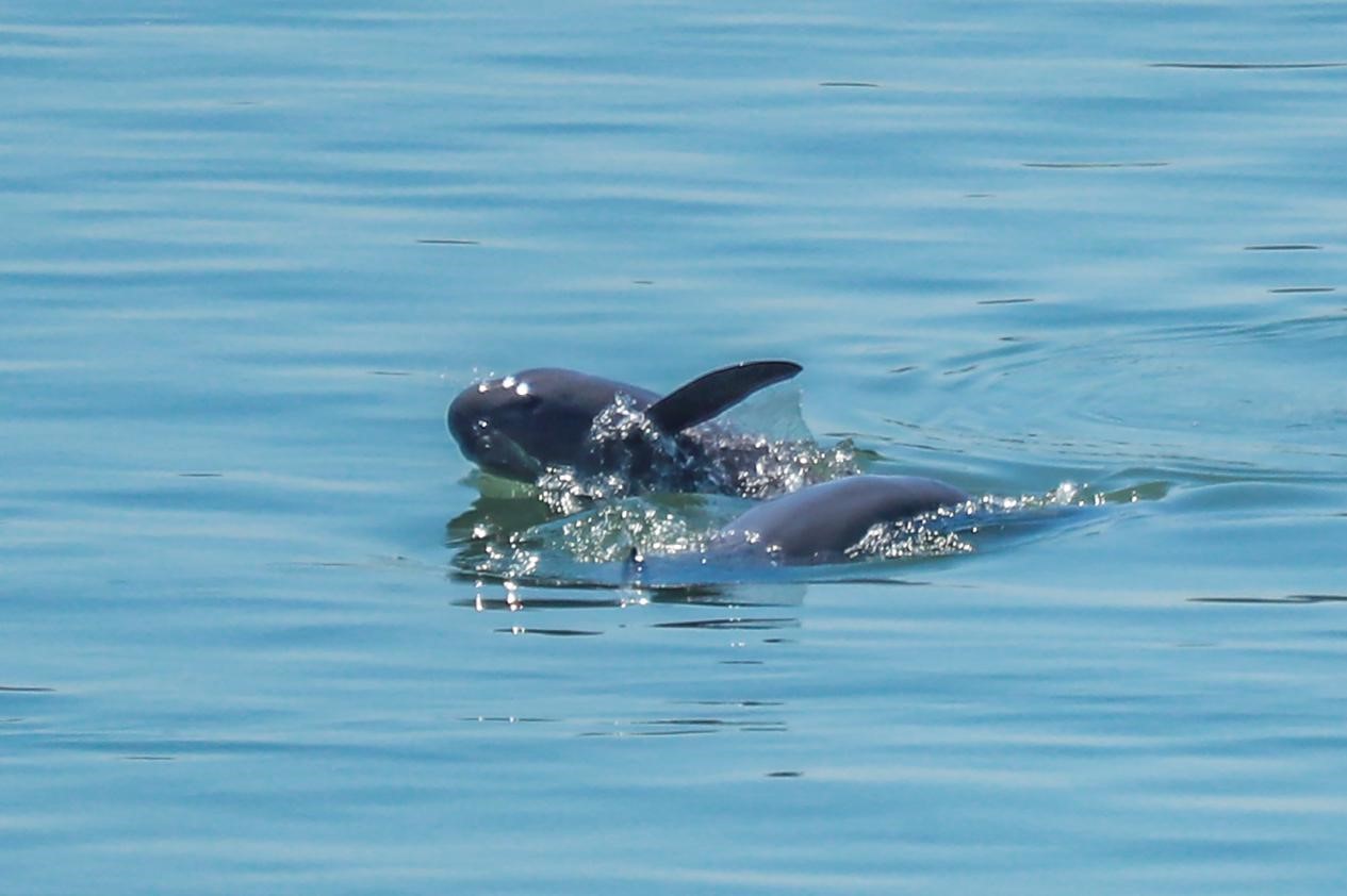 Yangtze finless porpoises frolic in the waters of Gezhouba Dam in Yichang, central China's Hubei province, Aug. 12, 2022. (People's Daily Online/Wang Gang)