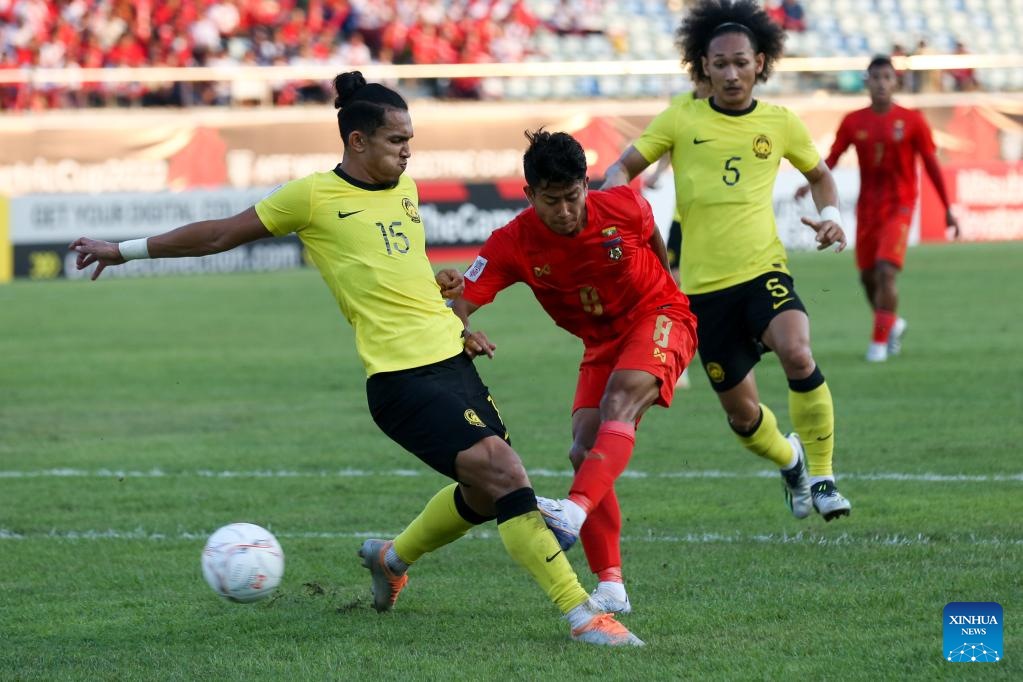 YANGON, Dec. 21 (Xinhua) -- Myanmar's men's national football team staged its first international match on home turf in around three years in a 1-0 loss to Malaysia on Wednesday for 2022 ASEAN Football Federation (AFF) Championship.