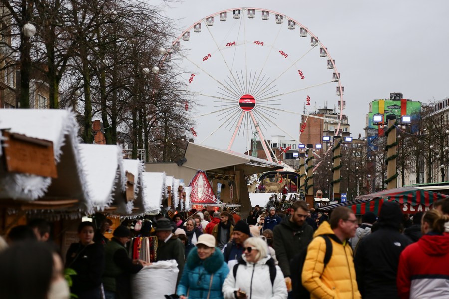 People visit a Christmas market in Brussels, Belgium, on Dec. 22, 2022. (Xinhua/Zheng Huansong)