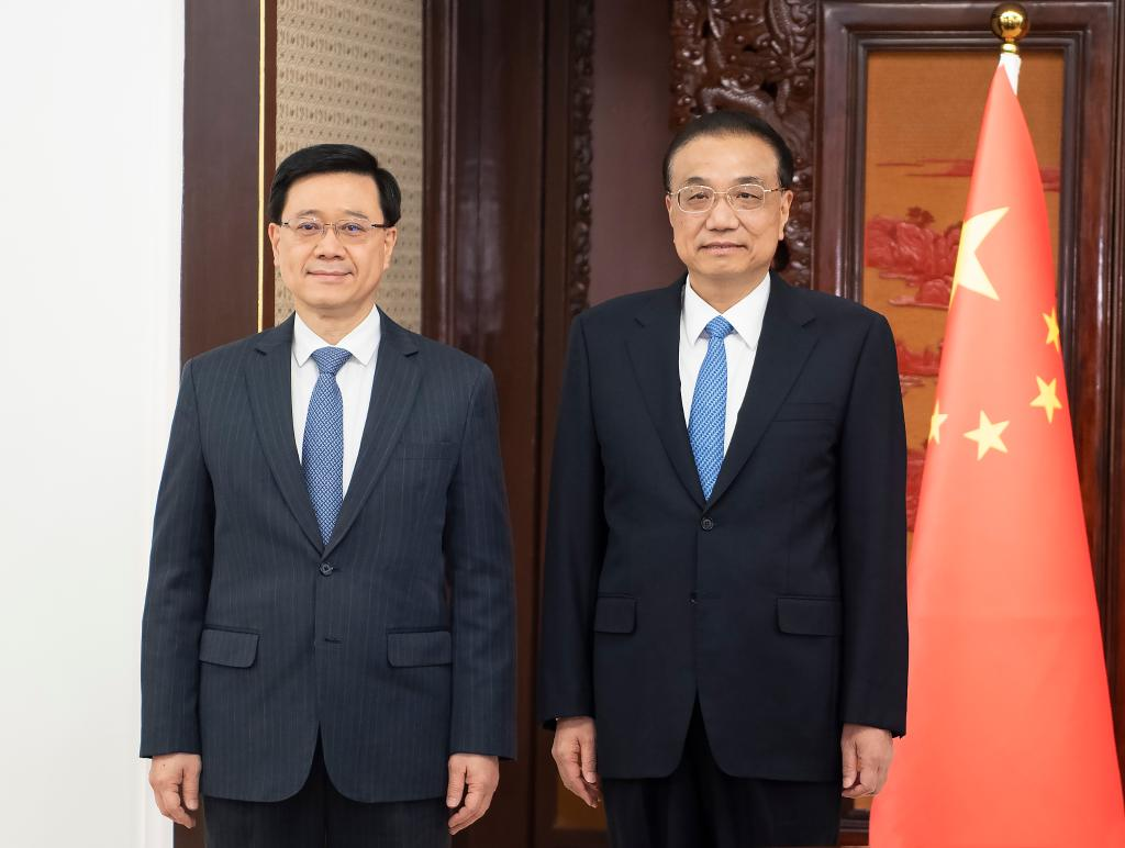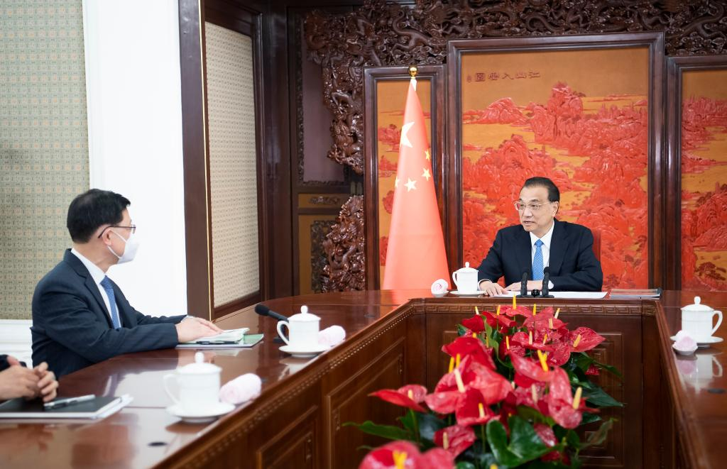During the meeting, Li heard a report on Hong Kong's current situation and the HKSAR government's work.