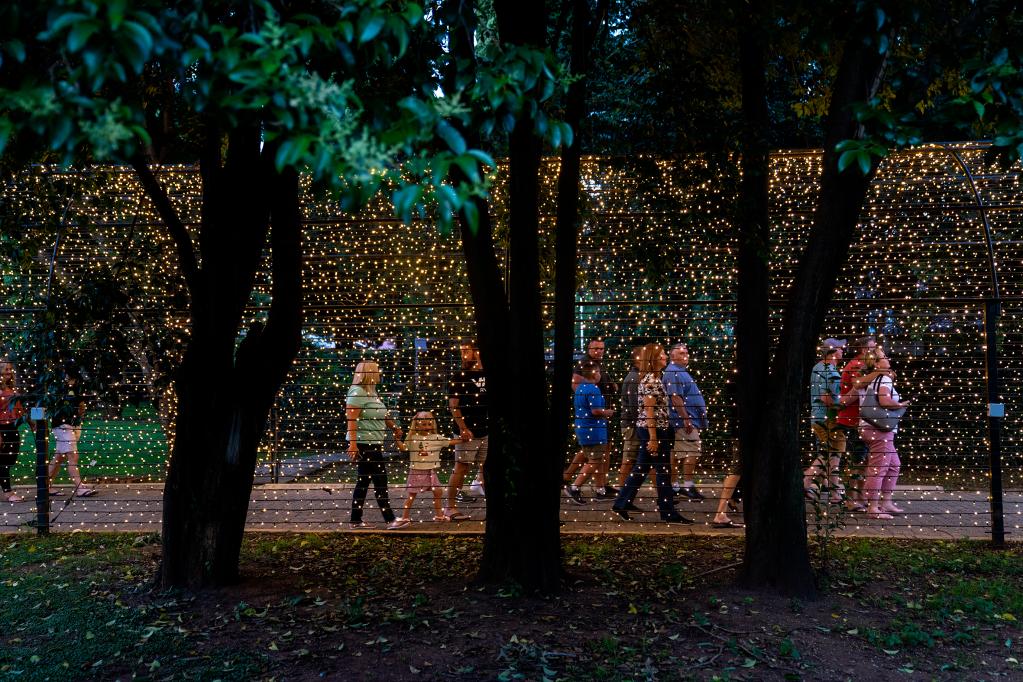 People visit a light fair in Potchefstroom, South Africa, Dec. 22, 2022. (Photo by Shiraaz Mohamed/Xinhua)