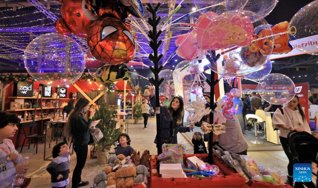 People buy balloons at a Christmas market in Beirut, Lebanon, on Dec. 18, 2022. (Xinhua/Liu Zongya)