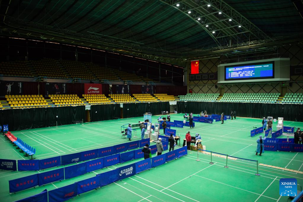This photo taken on Dec. 24, 2022 shows a makeshift fever clinic of Beijing Chaoyang Hospital in Chaoyang Gymnasium in Beijing, capital of China. (Xinhua/Chen Zhonghao)