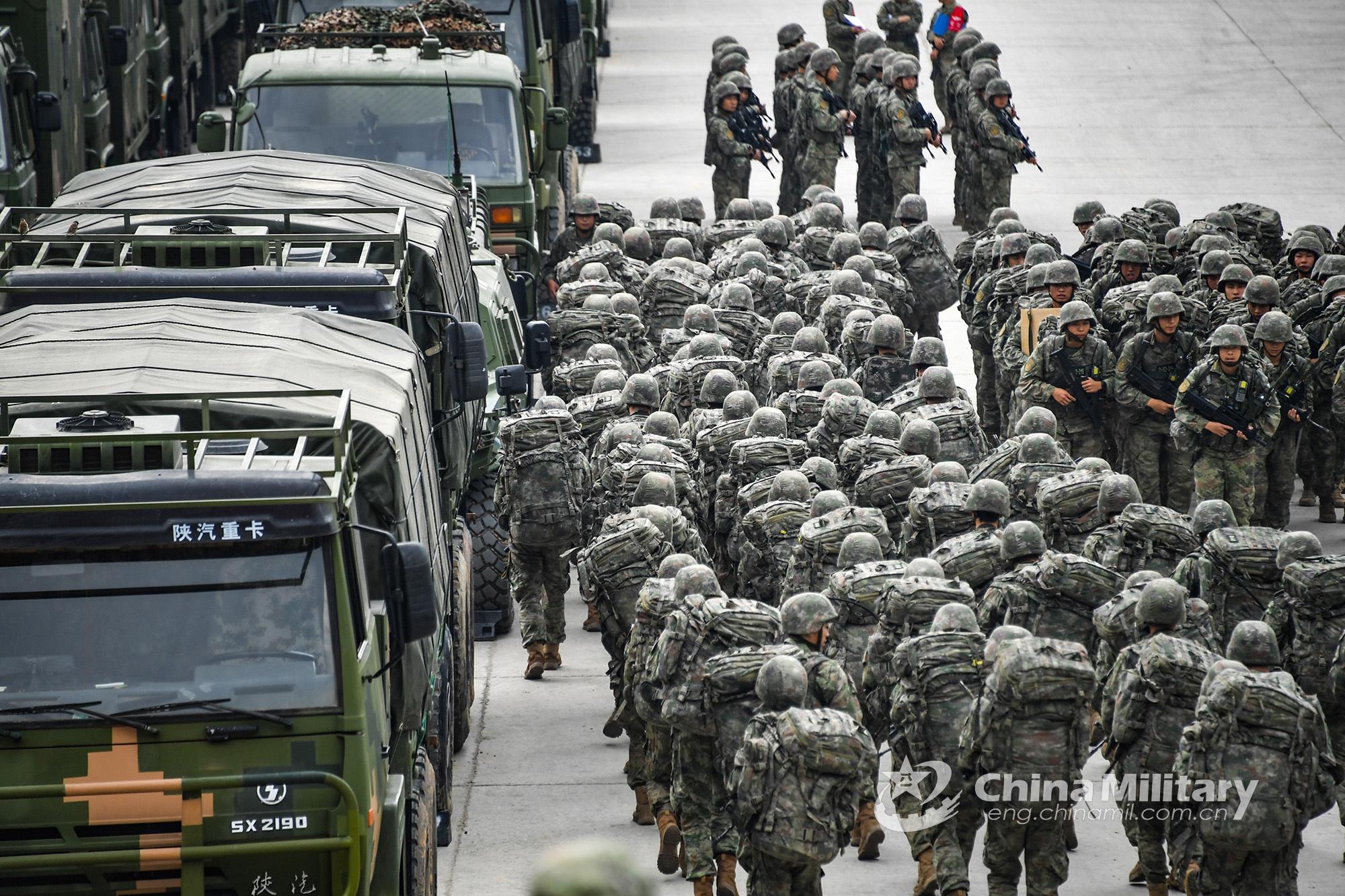 Fully-armed troops assigned to a brigade under the PLA 73rd Group Army muster in emergency to set out for the designated training field in real-combat training on November 21, 2022. (eng.chinamil.com.cn/Photo by Liu Zhiyong)