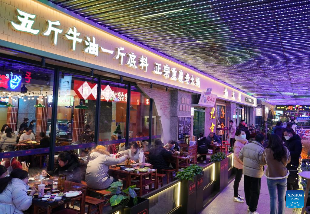 Customers have meal at a restaurant of a business center in Beijing, capital of China, Dec. 25, 2022. (Xinhua/Zhang Chenlin)