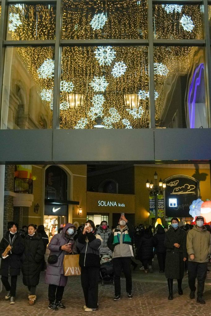People enjoy leisure time at a business center in Beijing, capital of China, Dec. 24, 2022. (Xinhua/Ju Huanzong)