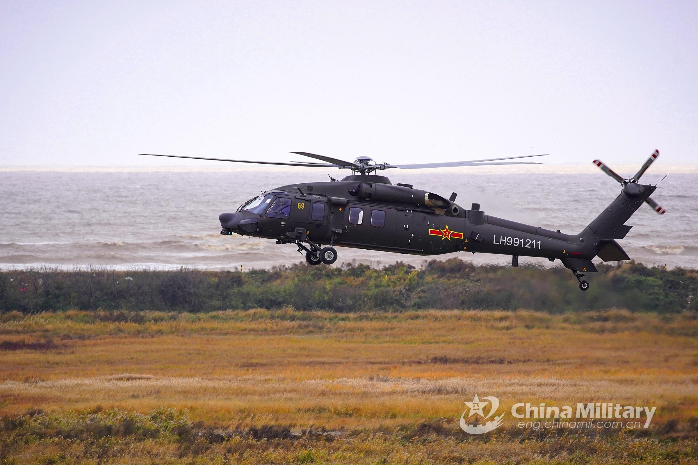 Helicopters attached to an army aviation brigade under the PLA 71st Group Army conduct ultra-low altitude defense penetration operations in flight training on November 13, 2022. (eng.chinamil.com.cn/Photo by Xiang Xu)