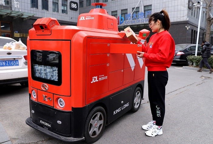 In October this year, six smart delivery vehicles of JD Logistics, a supply chain solutions and logistics services provider of JD.com, were put into trial operation in a testing base for autopilot vehicles in Shunyi district, Beijing.