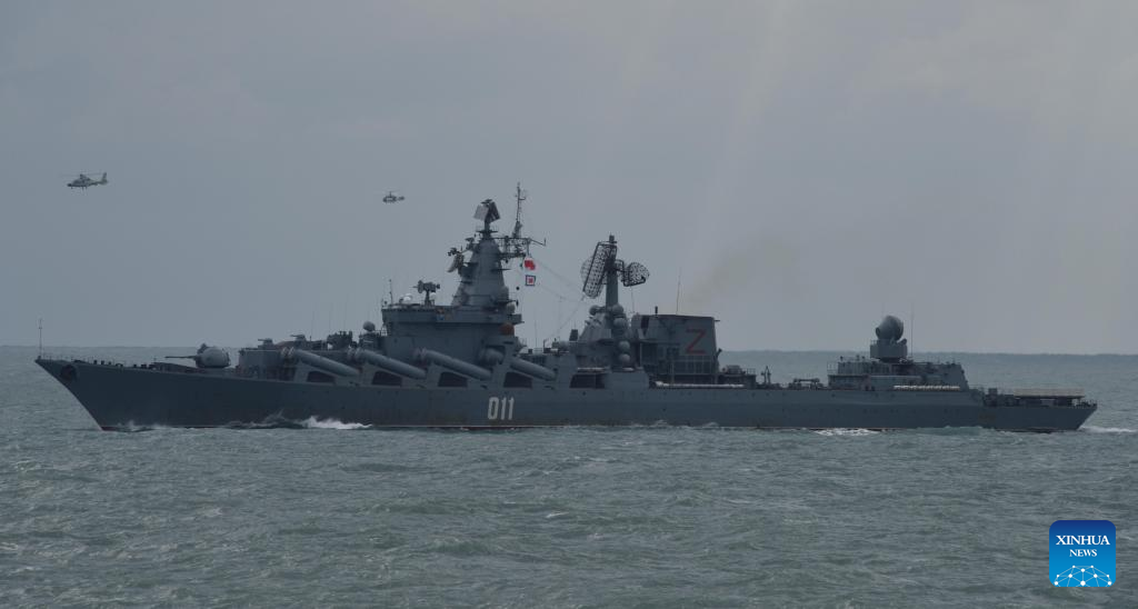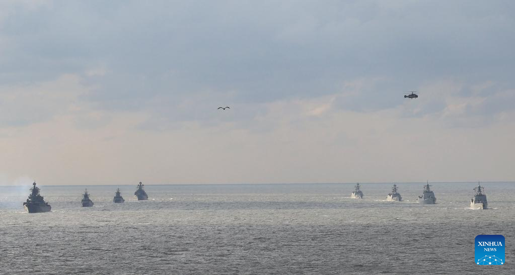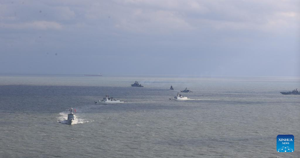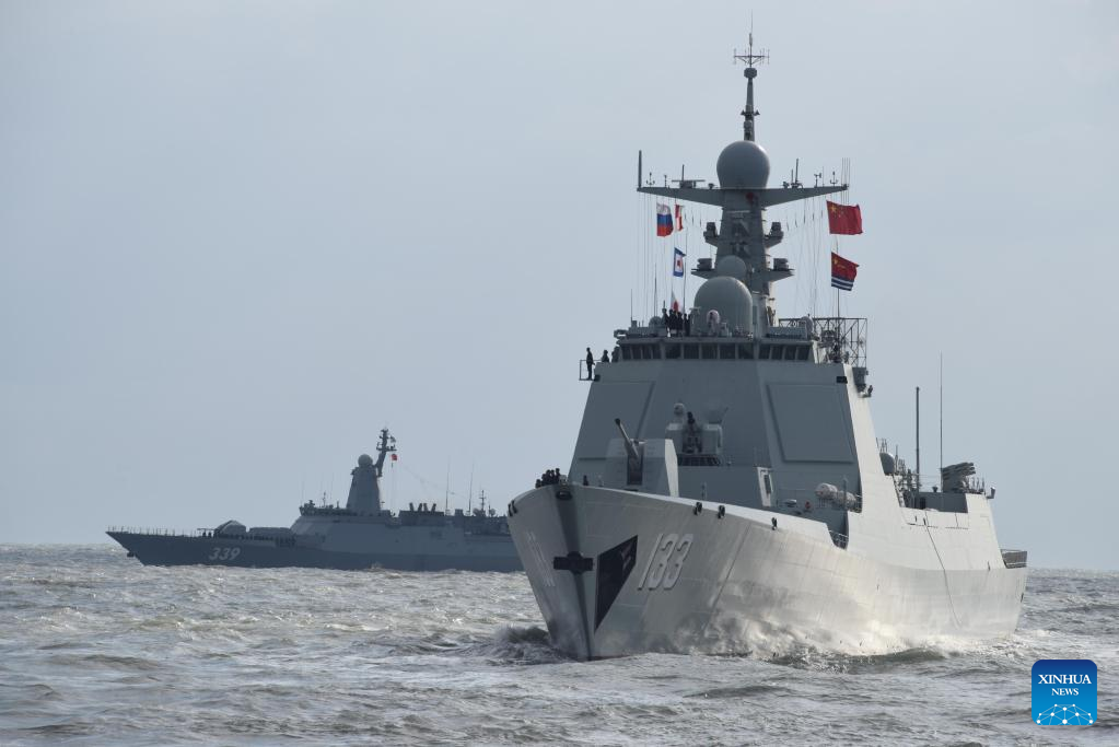 Warships from Chinese and Russian navies are pictured after a joint naval exercise, Joint Sea 2022, in the East China Sea on Dec. 27, 2022. (Xinhua/Li Yun)