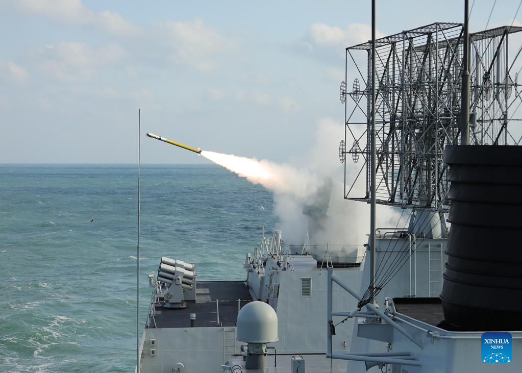 Chinese naval frigate Binzhou takes part in a joint naval exercise, Joint Sea 2022, in the East China Sea on Dec. 26, 2022. (Photo by Xu Wei/Xinhua)