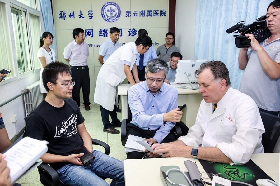 This photo shows Australian Nobel prize laureate Barry Marshall at a clinic in the Fifth Affiliated Hospital of Zhengzhou University in central China's Henan Province. (Xinhua)
