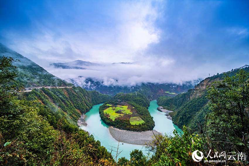 Photo shows the cloud-shrouded mountains and valleys near Nujiang River in southwest China's Yunnan Province, January 2022. (Photo/Fu Hao)