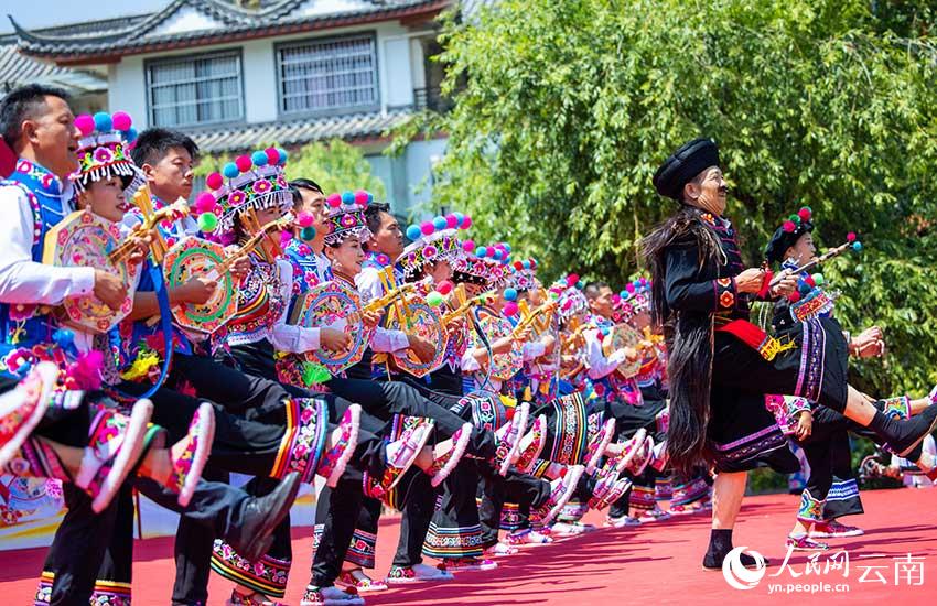 People of the Yi ethnic group perform the Left Foot Dance at the March Meeting, a local traditional festival, in Mouding county, Chuxiong Yi Autonomous Prefecture, southwest China's Yunnan Province, April 27, 2022. (Photo/Hu Zunhui)
