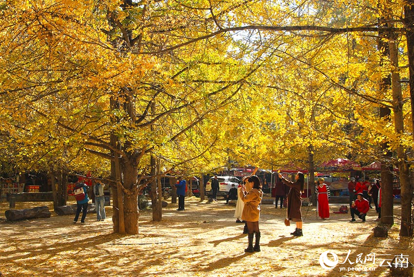 Photo shows a spectacular view of the ginkgo trees in a village in Tengchong city, southwest China's Yunnan Province. The village boasts more than 30,000 ginkgo trees covering an area of over 10,000 mu (666.7 hectares), and has become a hot tourist destination. (Photo/Liu Zhengfan)