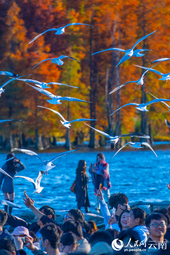 - Visitors feed black-headed gulls at Haigeng Park in Kunming