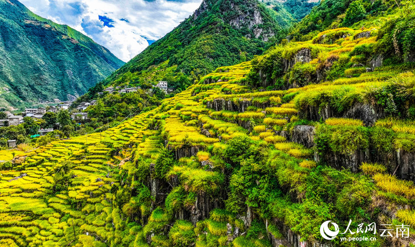 Photo shows a beautiful view of the terraced fields during harvest season in a village of Lushui city, southwest China’s Yunnan Province, September 2022. (Photo courtesy of the media convergence center of Lushui City)