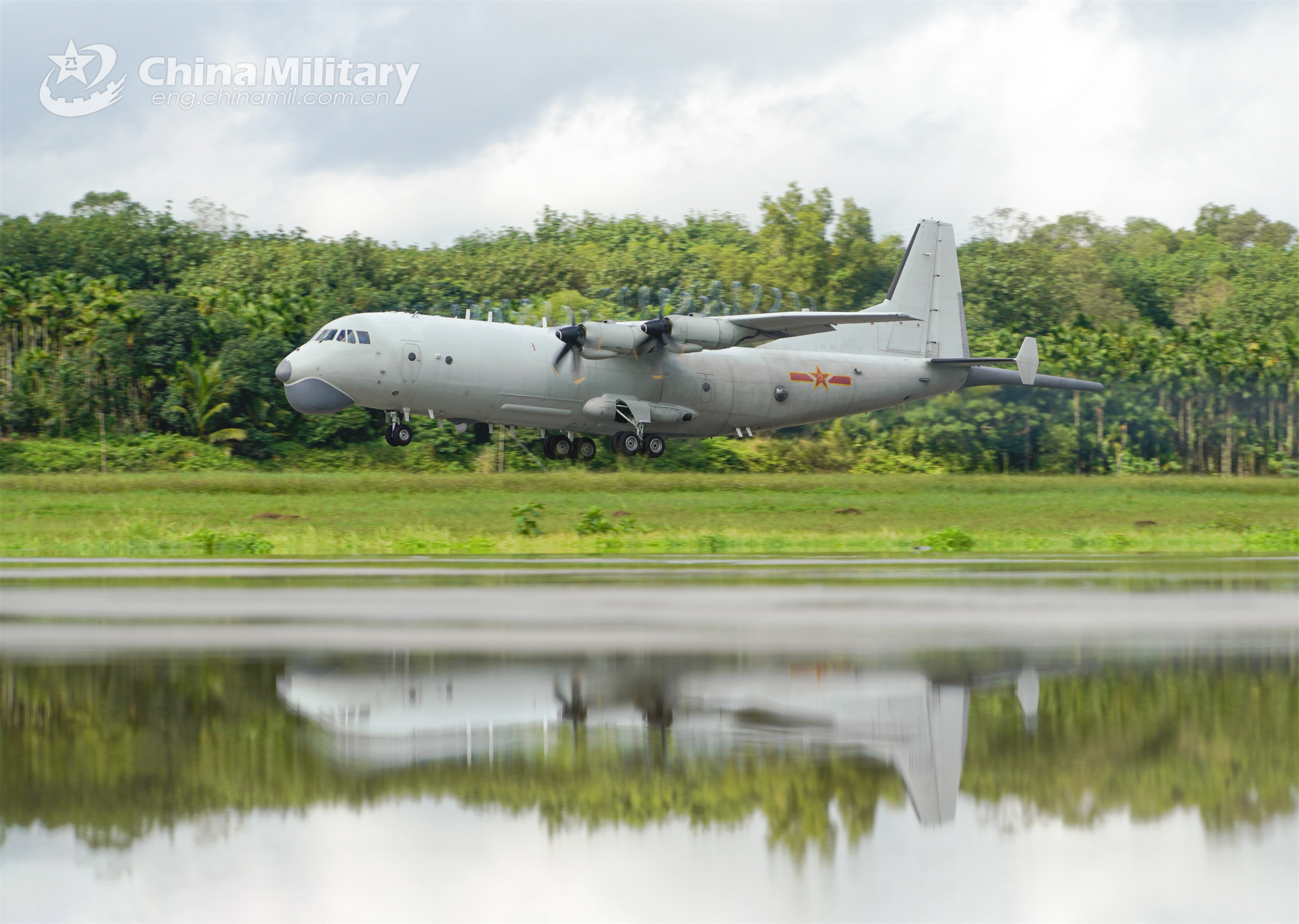 An anti-submarine patrol aircraft attached to a naval aviation unit under the PLA Southern Theater Command takes off from the runway for a high-intensity anti-submarine training exercise in mid-November, 2022. (eng.chinamil.com.cn/Photo by Qin Qianjiang)