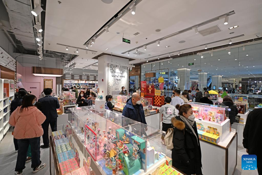 Customers shop at a shopping mall in north China's Tianjin, Dec. 31, 2022, the first day of the New Year holiday. (Xinhua/Zhao Zishuo)