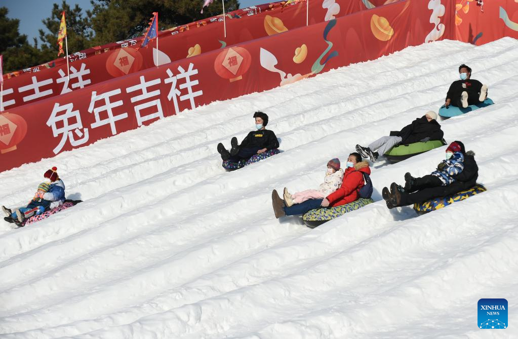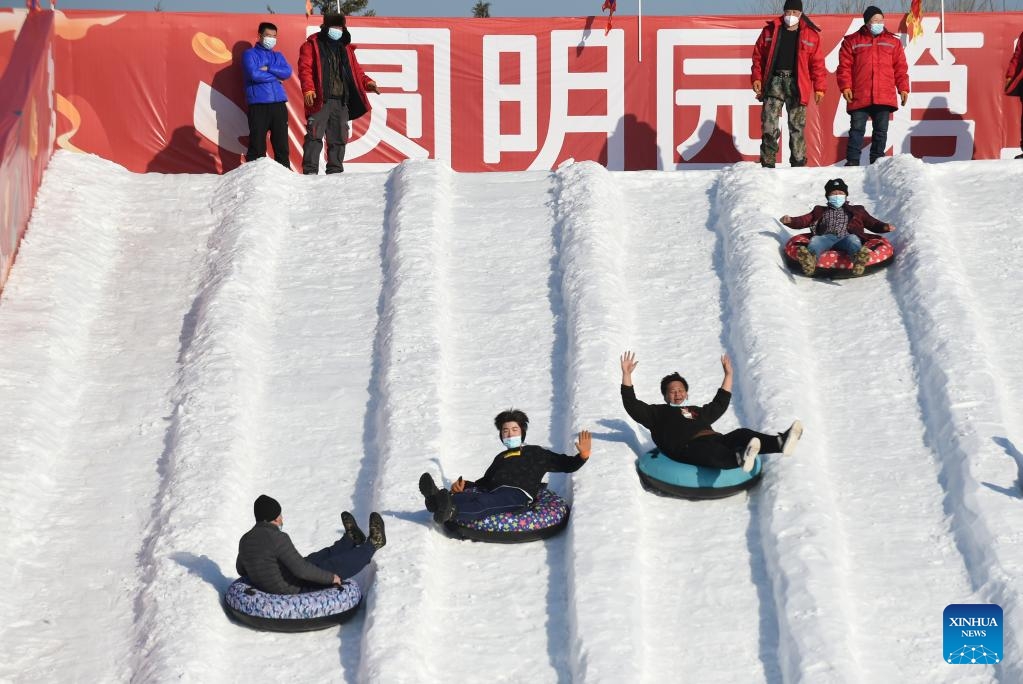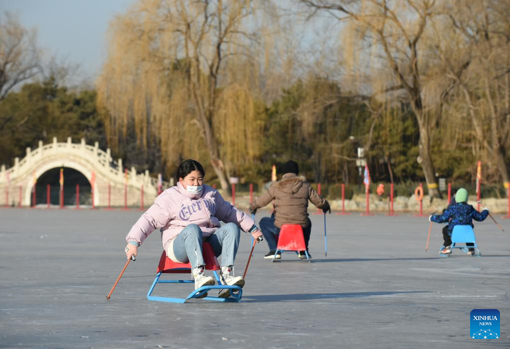 Visitors have fun at Yuanmingyuan Park in Beijing, capital of China, Dec. 31, 2022. (Xinhua/Luo Xiaoguang)