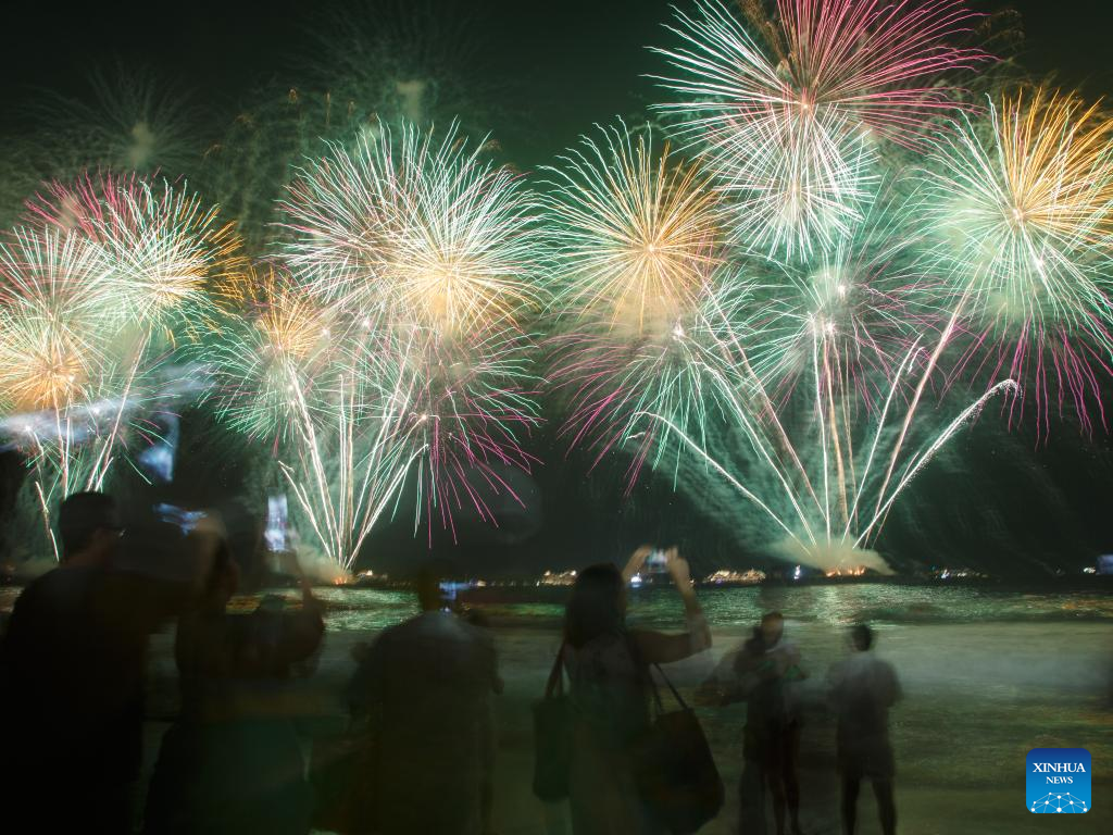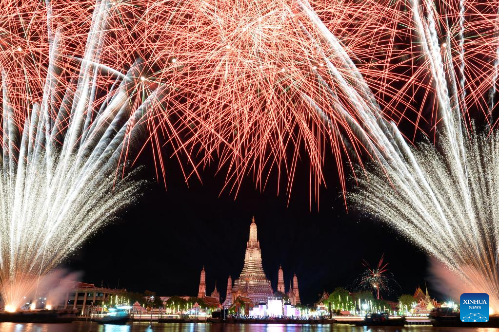 A fireworks display is seen to celebrate the New Year in Bangkok, Thailand, Jan. 1, 2023. (Xinhua/Rachen Sageamsak)
