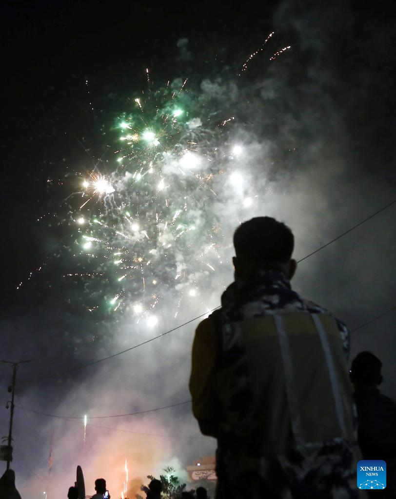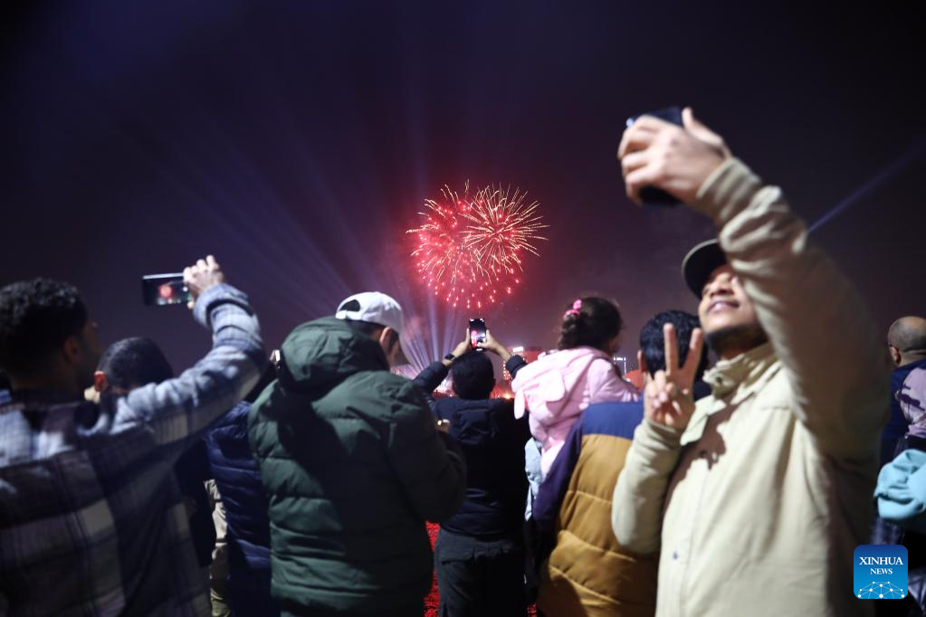 People watch fireworks to celebrate the New Year in Cairo, Egypt, Jan. 1, 2023. (Xinhua/Ahmed Gomaa)