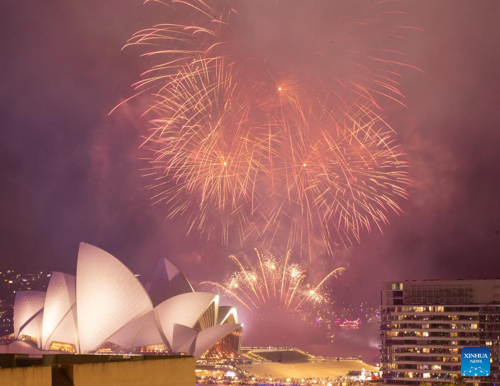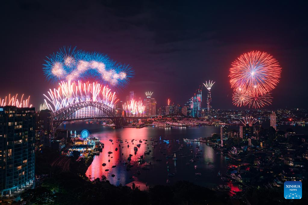 Fireworks explode during the New Year celebrations in Sydney, Australia, on Dec. 31, 2022. (City of Sydney/Handout via Xinhua)