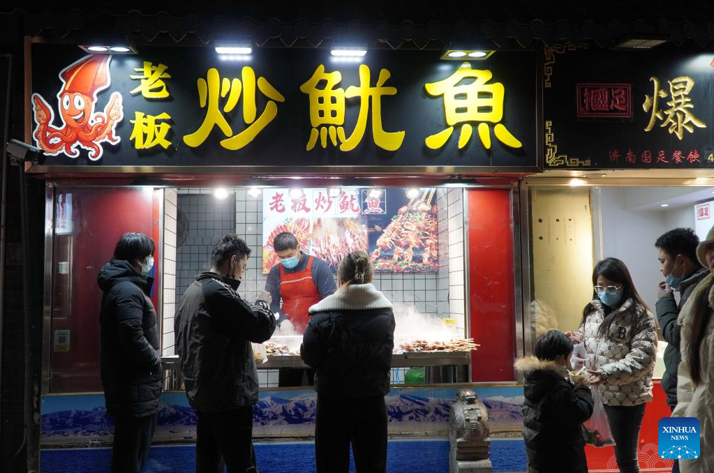 People buy food on Furong Street in Jinan, east China's Shandong Province, Jan. 2, 2023. (Xinhua/Xu Suhui)