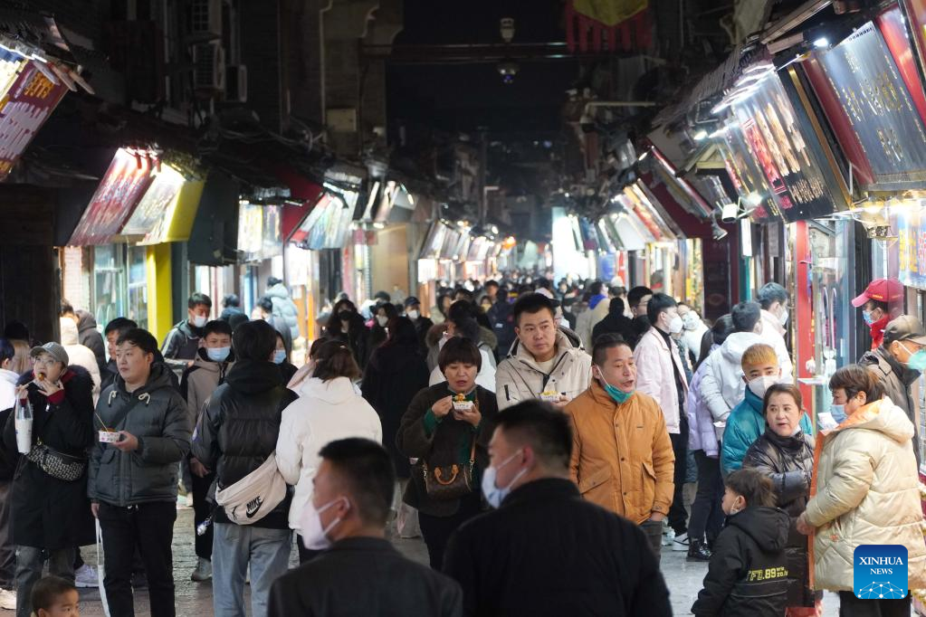 People saunter on Furong Street in Jinan, east China's Shandong Province, Jan. 2, 2023. (Xinhua/Xu Suhui)