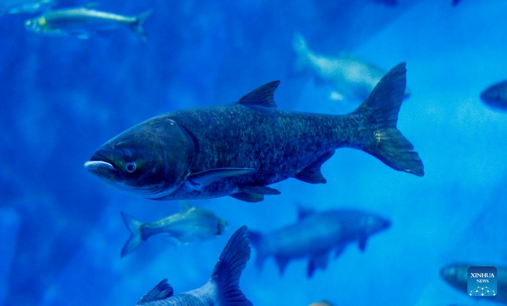This photo taken on Dec. 12, 2022 shows a bighead fish at an aquatic organism conservation center to protect biodiversity in the Yangtze River and Poyang Lake, in Hukou County of Jiujiang City in east China's Jiangxi Province. (Xinhua)