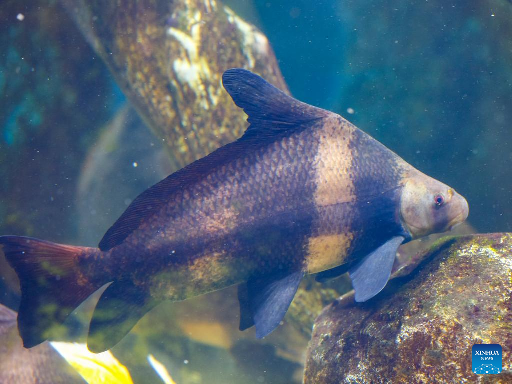 This photo taken on Dec. 12, 2022 shows a Chinese sucker fish at an aquatic organism conservation center to protect biodiversity in the Yangtze River and Poyang Lake, in Hukou County of Jiujiang City in east China's Jiangxi Province. (Xinhua)