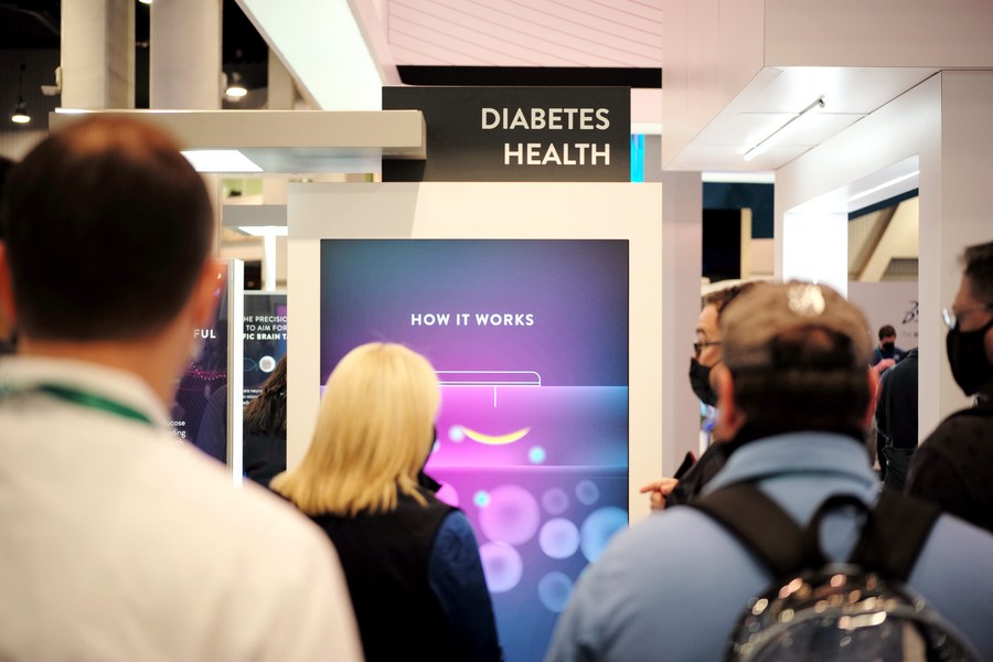 Visitors view health technologies during the 2022 Consumer Electronics Show (CES) in Las Vegas, the United States, Jan. 6, 2022. (Xinhua/Wu Xiaoling)