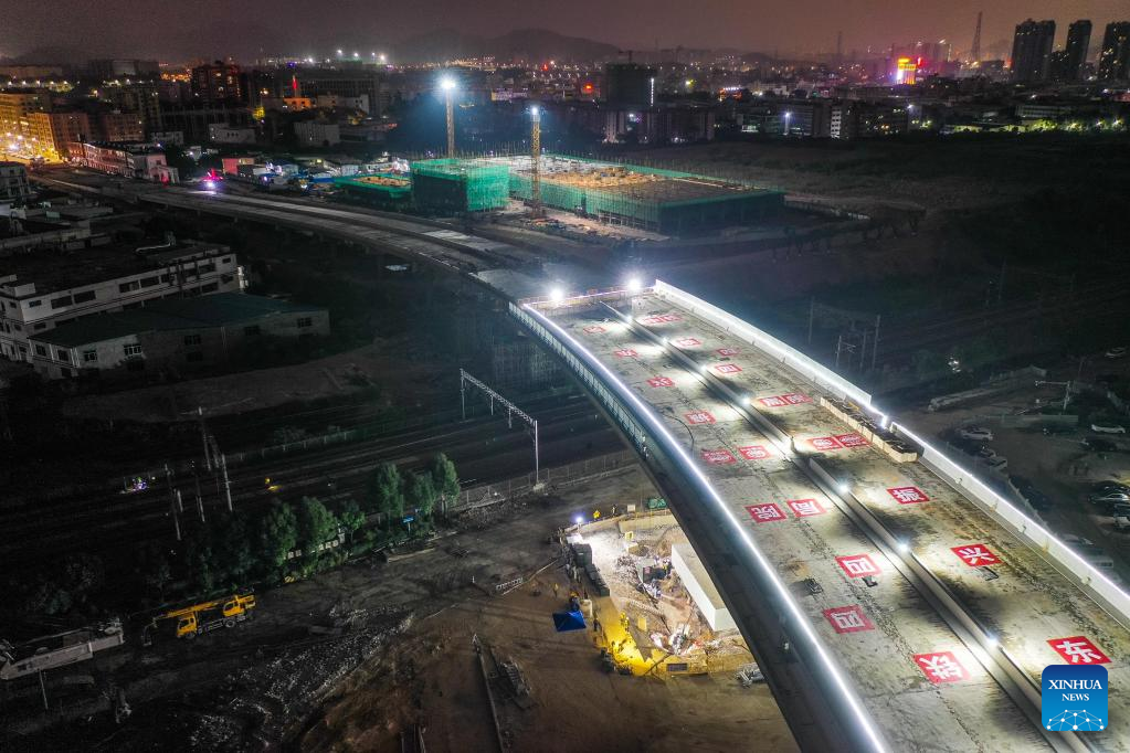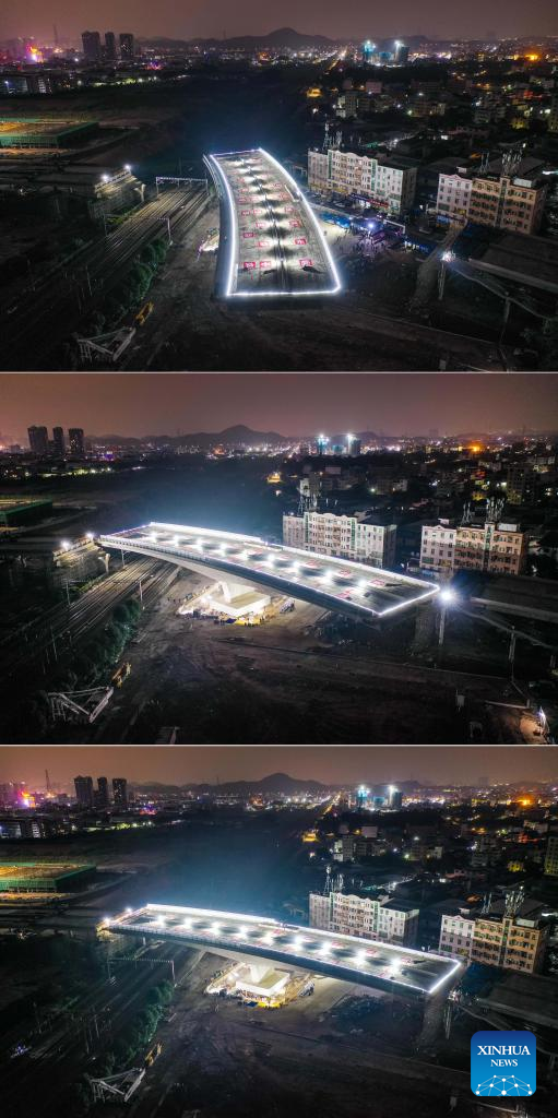 The 130-meter-long, 29.5-meter-wide and 16,000-tonne swivel girder, which lies across the Guangzhou-Shenzhen Railway, was successfully rotated to its targeted position on Wednesday.