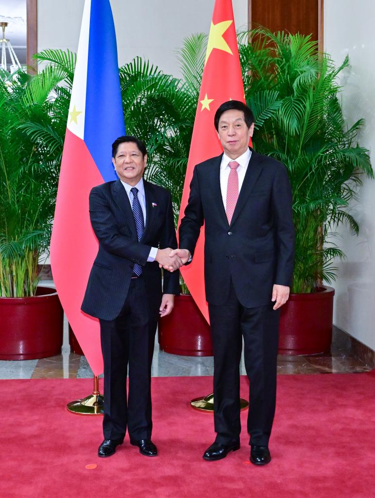 BEIJING, Jan. 4 (Xinhua) -- China's top legislator Li Zhanshu met with visiting President of the Republic of the Philippines Ferdinand Romualdez Marcos Jr. in Beijing on Wednesday.